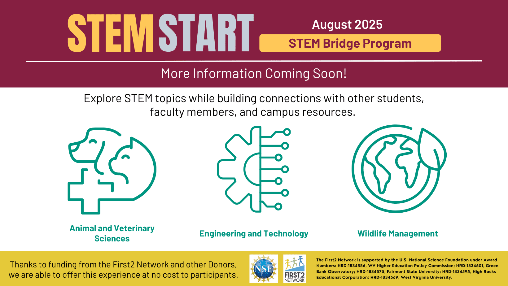 We’re glad that you are interested in applying to STEM START 2025! Participation is limited to a total of 45 students, with participants from each major being accepted on a first come, first served basis. Applying early is encouraged to secure your seat. The application deadline is July 1, 2025. Apply here today!