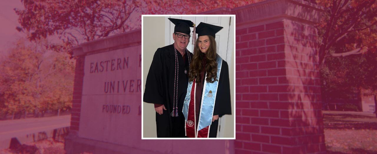 Eastern Kentucky University (EKU) graduates Tim and Isabelle Meyer, father and daughter, were able to share a special milestone that many parents and their children don’t get to accomplish together: graduating college.